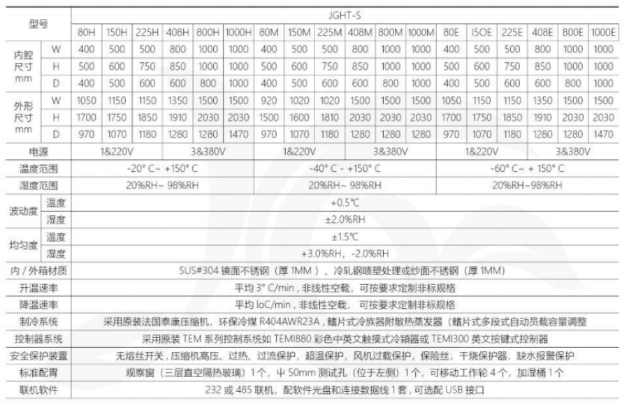※采用干湿球式或电容式多功能多段可程温湿度控制器。